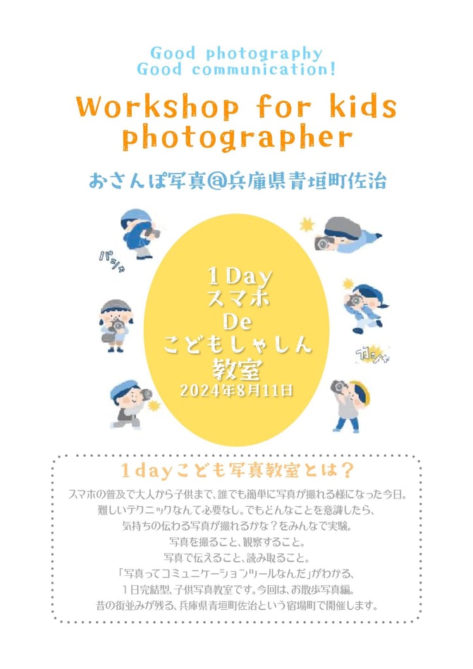 「夏休み企画!」 〜子供写真教室を丹波の旧街道で開催します。 かつて専門学校で写真を教えてた頃から沸々と妄想してた、子供写真教室のロケバージョンを夏休みの8月11日に開催します!...